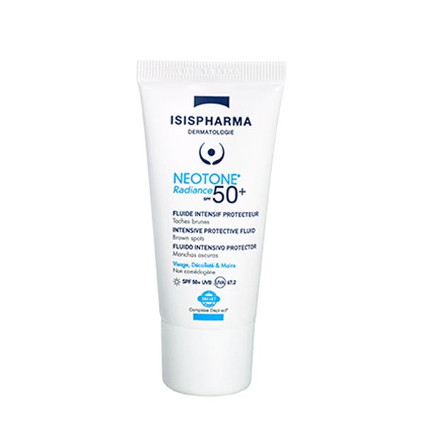 Neotone Radiance Fluido SPF 50+ Tratamiento de protección solar 50+ cuya función despigmentante actúa contra todas las manchas pigmentarias. Gracias a su alta protección solar se evita y disminuye el fotoenvejecimiento facial.